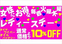 こんにちは! タイヤ館佐世保店の毎週火曜日・木曜日は レディースデーを開催しております。 タイヤ・エンジンオイル・バッテリー・ワイパーなどなど 通常価格より10%オフさせていただきます!! あつ~い、あつ~い日がつづいております・・・ とくに! バッテリーは要注意です。 暑い夏でエアコ...