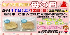 もうすぐやってきます、この日が、、、★ 5/12 (日)は、、、 母の日 ★Mothers day ということで! タイヤ館佐世保店から 少しばかりのプレゼントが~♪! 只今、準備中であります! 乞うご期待です!!\(^^)/