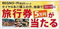 こんにちは。 タイヤ館 では REGNO . Playz シリーズのタイヤを 4本ご購入していただきますと 抽選で 旅行券 が当たる キャンペーン実施中です!! キャンペーン期間は4/30までとなっております! タイヤの種類や性能など 詳しくはコチラをチェック↓↓↓ https://tire.bridgestone.co.jp/ タイヤをお...