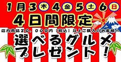 2019年 1月3日から6日までの 4日間は →初売りセール← この期間に 税込 2万円以上 ご購入して下さった方へ ☆選べるグルメ☆ プレゼント(^^)! さらに ご来場プレゼントも用意いたします! なくなり次第、終了となります( .. ) たくさんのご来店お待ちしております!! タイヤ館佐世保 長崎県佐世保市...
