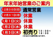 改めまして!! タイヤ館佐世保店の 年末年始の営業のご案内をさせていただきます! 2018.12.30(日) まで通常営業 2018.12.31(月)~2019.01.02(水)まで休業 2019.01.03(木) 初売り 朝10時オープン 2019.01.04(金) より通常営業 となっております!! お間違えのないようお願い致します。