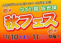 タイヤ館佐世保店 にて 11/10(土).11(日)の2日間 「秋フェス」 開催いたします!! ホイール・LED・ドライブレコーダーなど展示会も開催! スタッドレスタイヤの早期予約も受け付けております^^ 期間中は ご来店プレゼントもご用意しております^^ さらにご購入して頂いた方へもプレゼン...