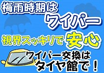 雨が降る季節です! ワイパーの点検・交換 お済みでしょうか??? ハケが悪かったり ビビリ音が鳴ったりと 症状が出ていれば交換時期かもしれません。 ワイパー交換もタイヤ館佐世保店でぜひ!!