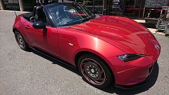 先日ロードスターに装着しました! しかも! お客様のこだわりで ホイールの縁だけを車と同じ色に 塗装した特別仕様!!(゜ロ゜ノ)ノ 予想以上のカッコ良さでした♪
