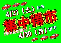 タイヤ館佐世保店よりお知らせです~ 4/21 土曜日から4/30 月曜日まで 集中得市セールを開催いたします♪ お車のことは当店にお任せください!!! お見積もりだけでもOKですよ(^^) お気軽にお立ち寄りください♪ 無料点検も行っております^^