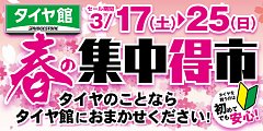 3/17から3/25まで、 春の集中得市セールになっております~。 お車のメンテナンスは、 タイヤ館 佐世保店へお任せ下さい! タイヤ館 佐世保店 スタッフ一同、 ご来店を心よりお待ち申し上げます♪♪