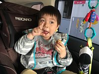 昨日は息子が溶連菌だったので保育園を休ませて一日一緒に過ごしました! 病院帰りに大好物の唐揚げを買いご機嫌な一枚を撮影しました(笑)
