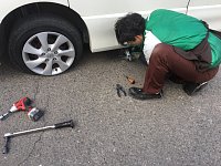 こんにちは! 今日は寒いですねぇ・・ そんな中ミニバンに必須のアイテム後部席モニターを取り付ける為、アルファードの天井切ってます!! 新車なので緊張してます! タイヤ館でもナビやオーディオの取り付けが可能ですので是非お問合せください。