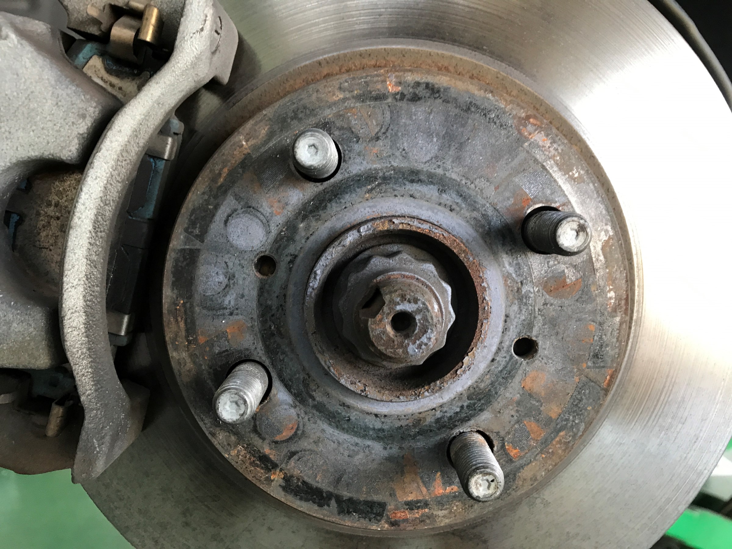 普段見えない、ハブ(タイヤを外したら見える、取付部分です)