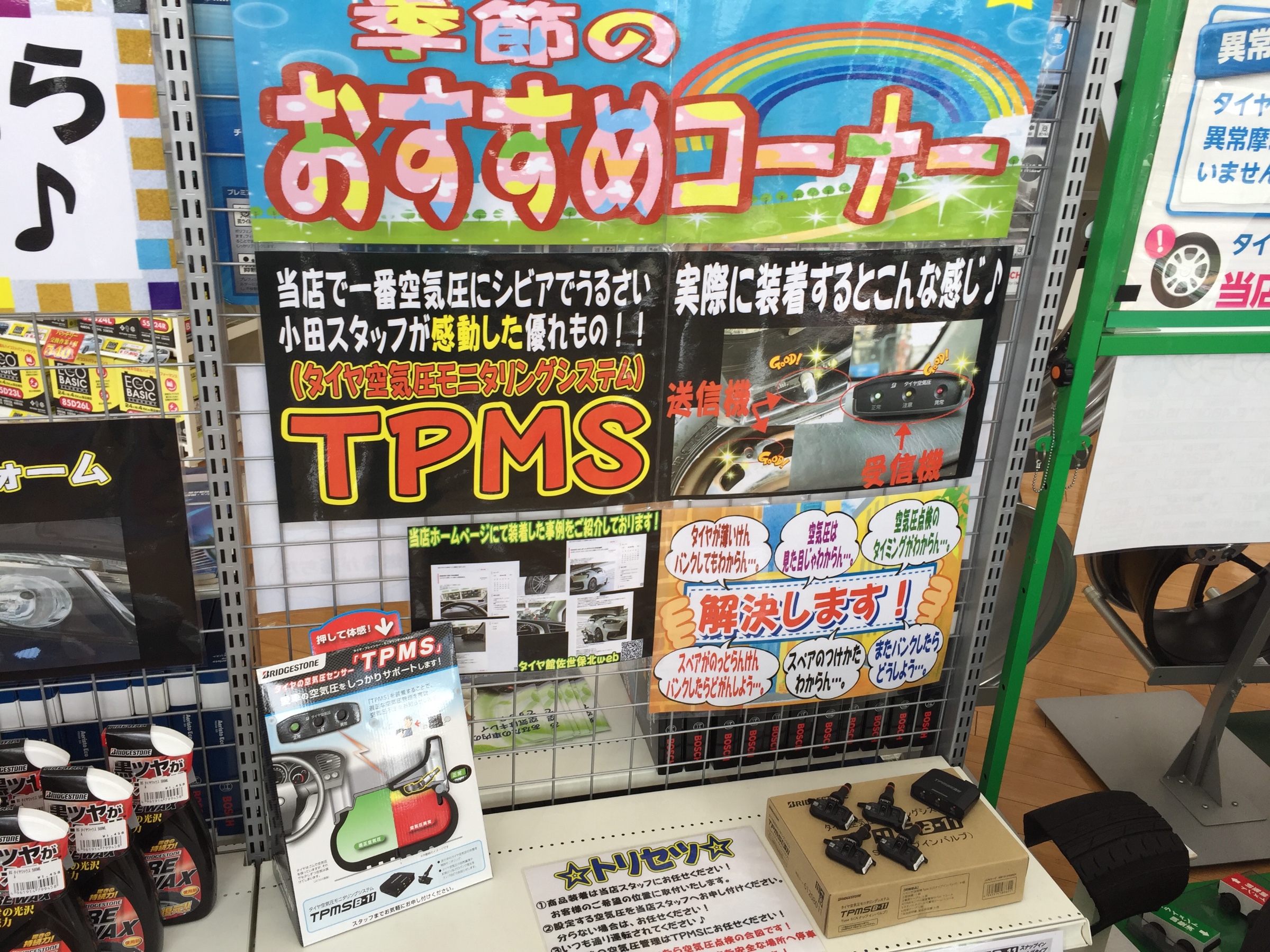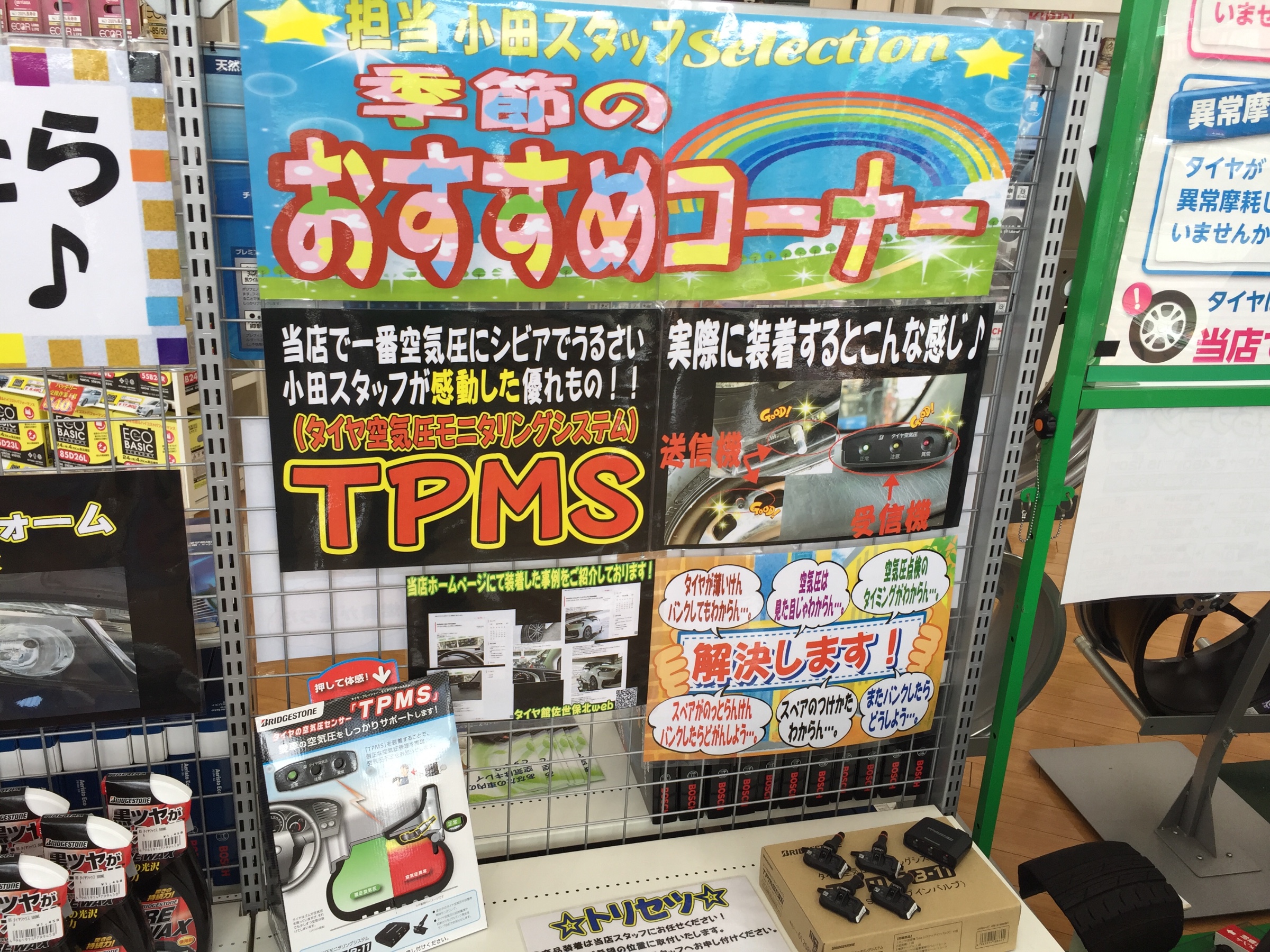 佐世保北店 オススメコーナー完成❗️ ポスト 2017年7月18日 前回の続き オススメコーナー完成致しました〜 タイヤの空気圧管理が 車内からランプで分かるんです❗️ 最近のお車はスペアタイヤが 搭載されてないのが多くなってます お出かけ前にパンクしてた〜とか 困りますよね❗️ 私もそういう経験あります・・・ 「TPMS」非常に良い商品です。 詳しくは当店 タイヤ館 佐世保北店 スタッフまで お気軽にお尋ね下さい‼️ 担当:橋口