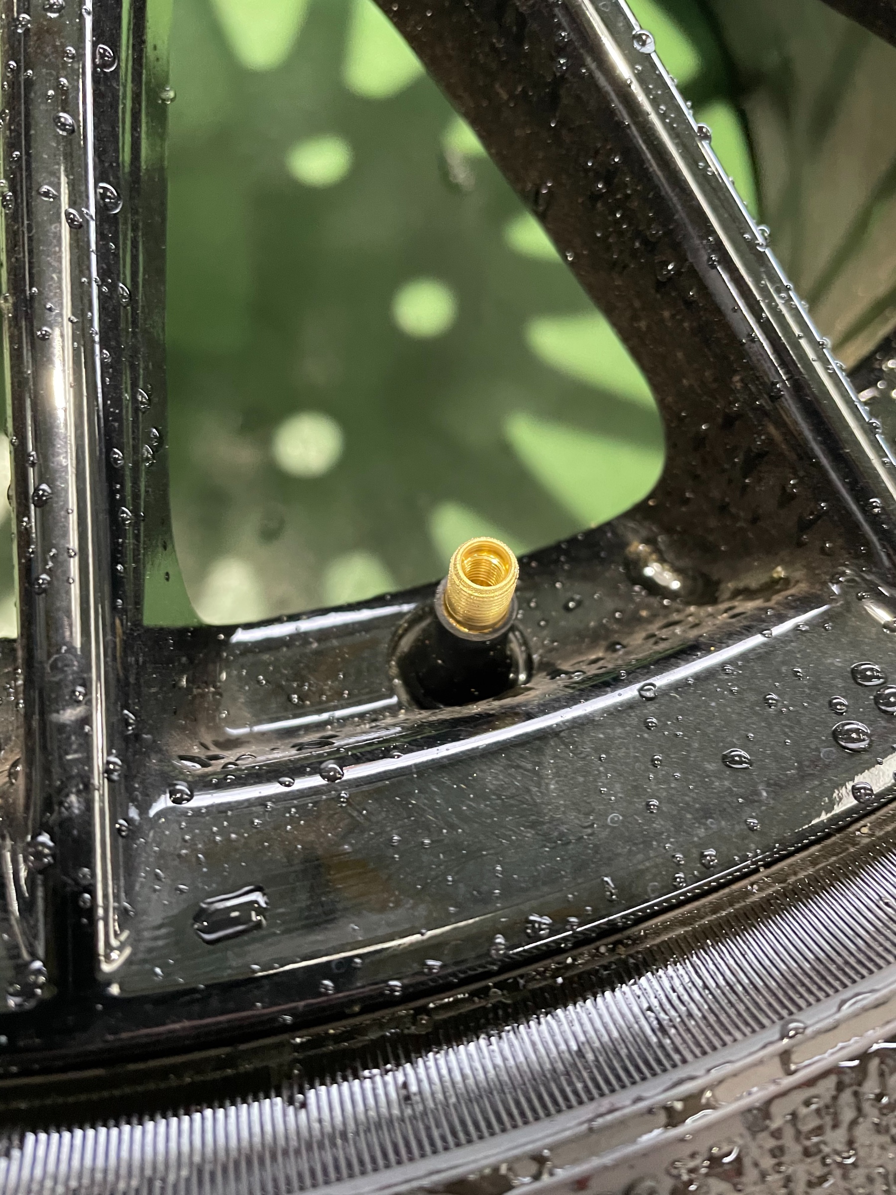 取り付けると金属型のバルブになります!同時に抜けにくい窒素ガスを充填致しましたのでご注入防止の為キャップも交換します!