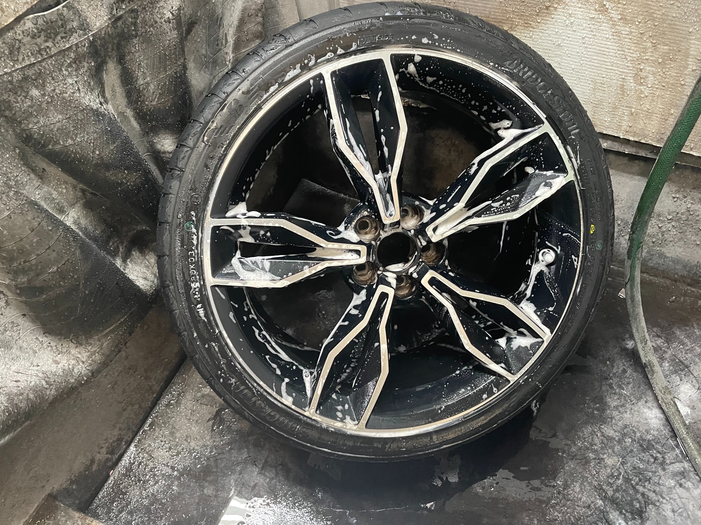 交換をしてバランスを取った後はホイールダストの清掃を致します。当店ではタイヤ交換のお客様は全てサービスで磨かせていただいておりますよ♪