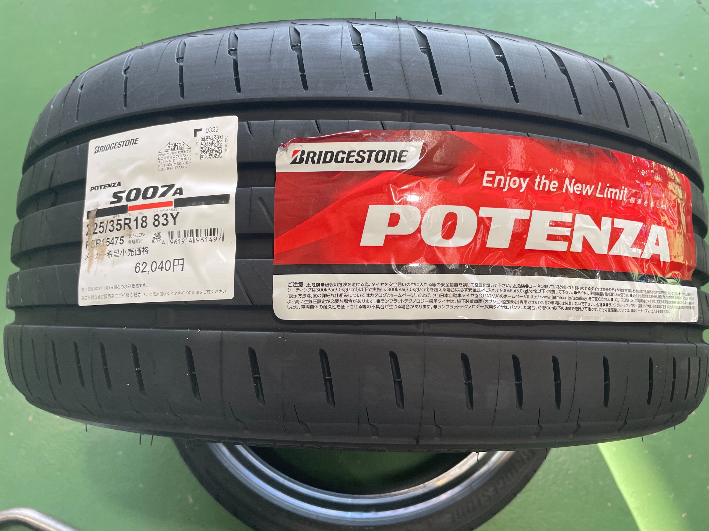 タイヤサイズは225/35R18 お取付させて頂いたタイヤはPOTENZA S007Aです。
