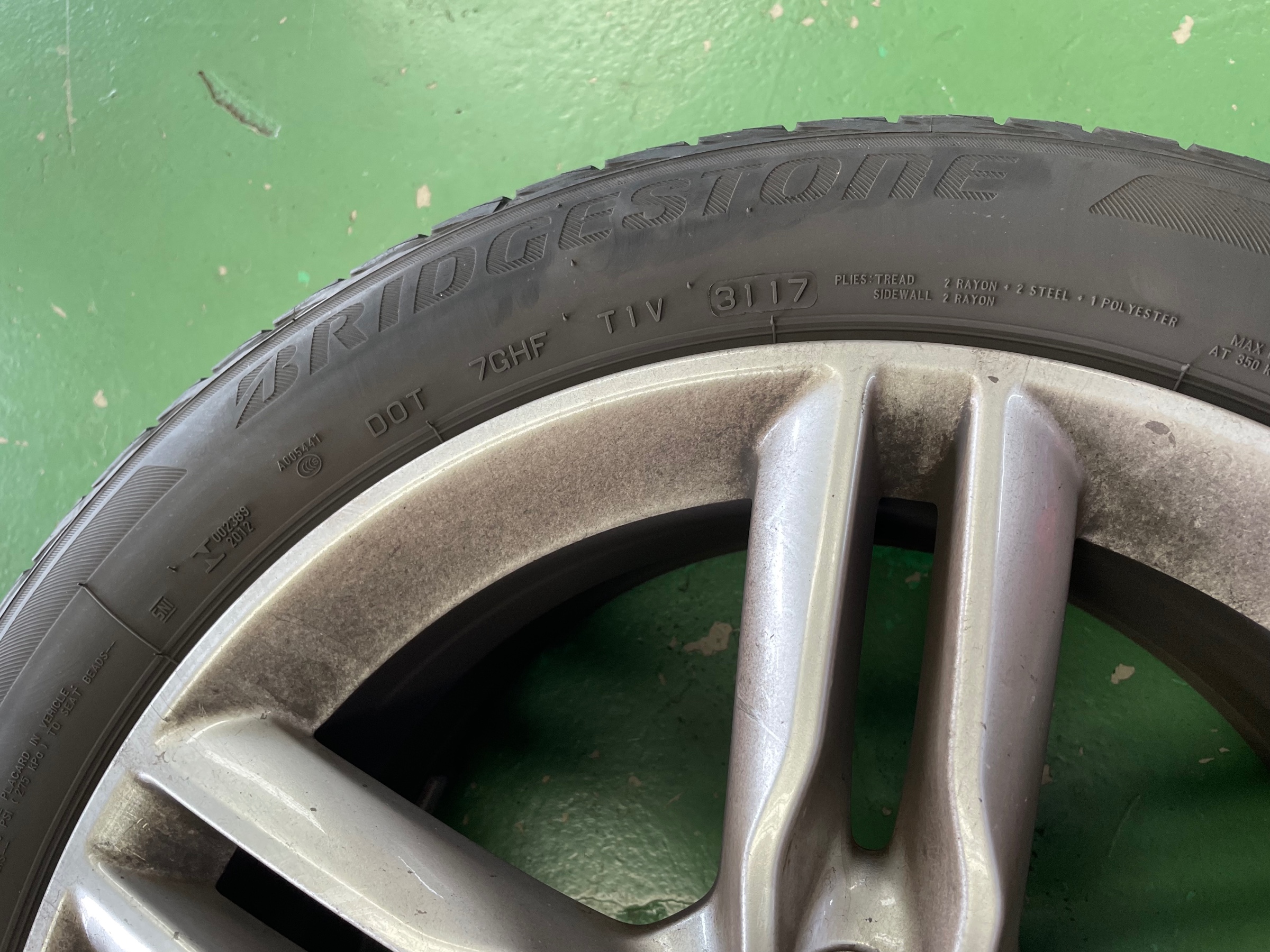 2017年31週製造なので約5年弱使われております。上記の画像を見てもわかる様に小さなヒビがミゾの中にビッチリ入ってますので硬化が進んでます。ちなみに新品の同じタイヤは