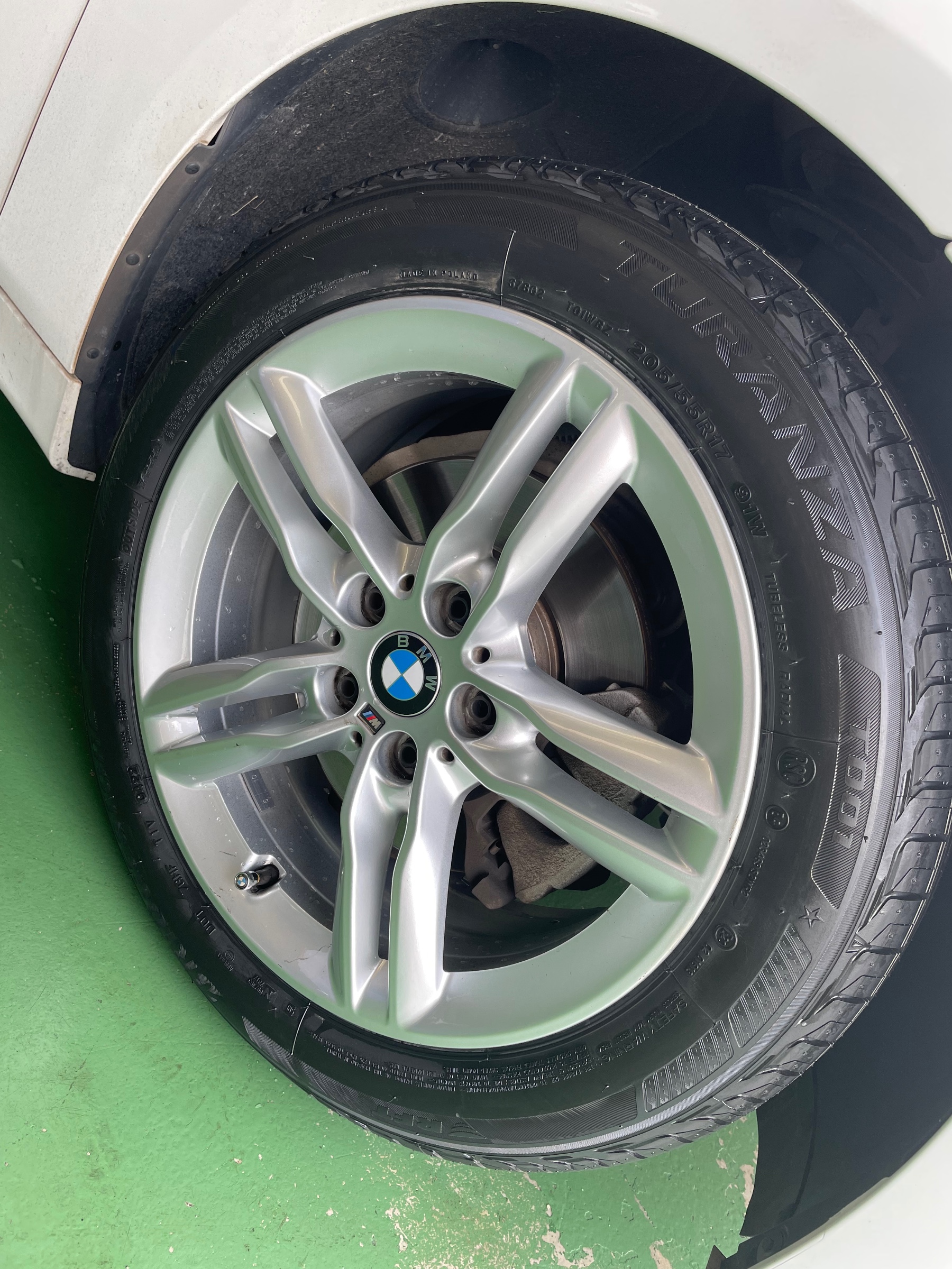 BMW 2シリーズ アクティブツアラー(F45)のタイヤ交換を実施しました。サイズは205/55R17 91W 、装着タイヤはTURANZA T001、⭐︎マーク(BMW承認マーク)付きのRFT(ランフラットタイヤ)です。