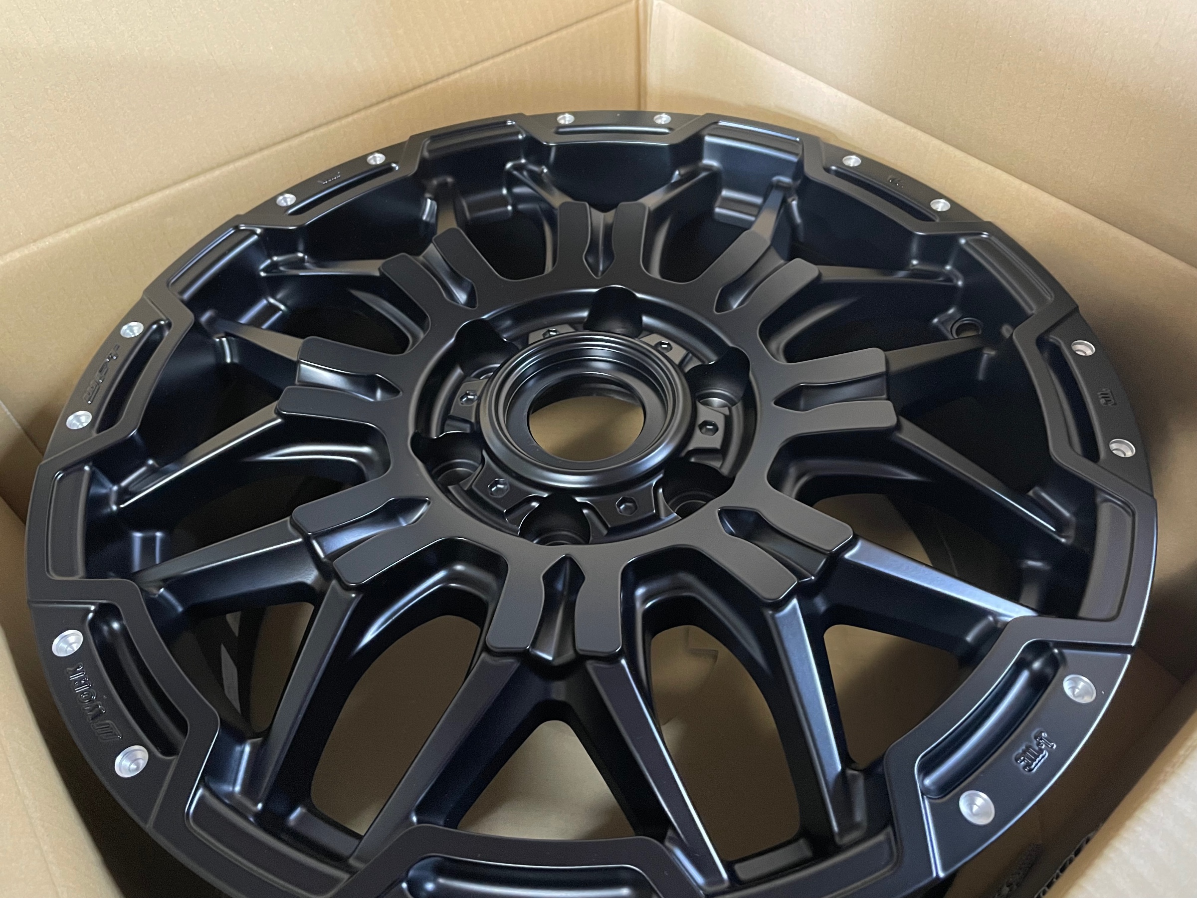 サイズは18、オフセットは8J(52)、カラーはMBLPM(ブラックカットクリアブラックピアスマシニング)