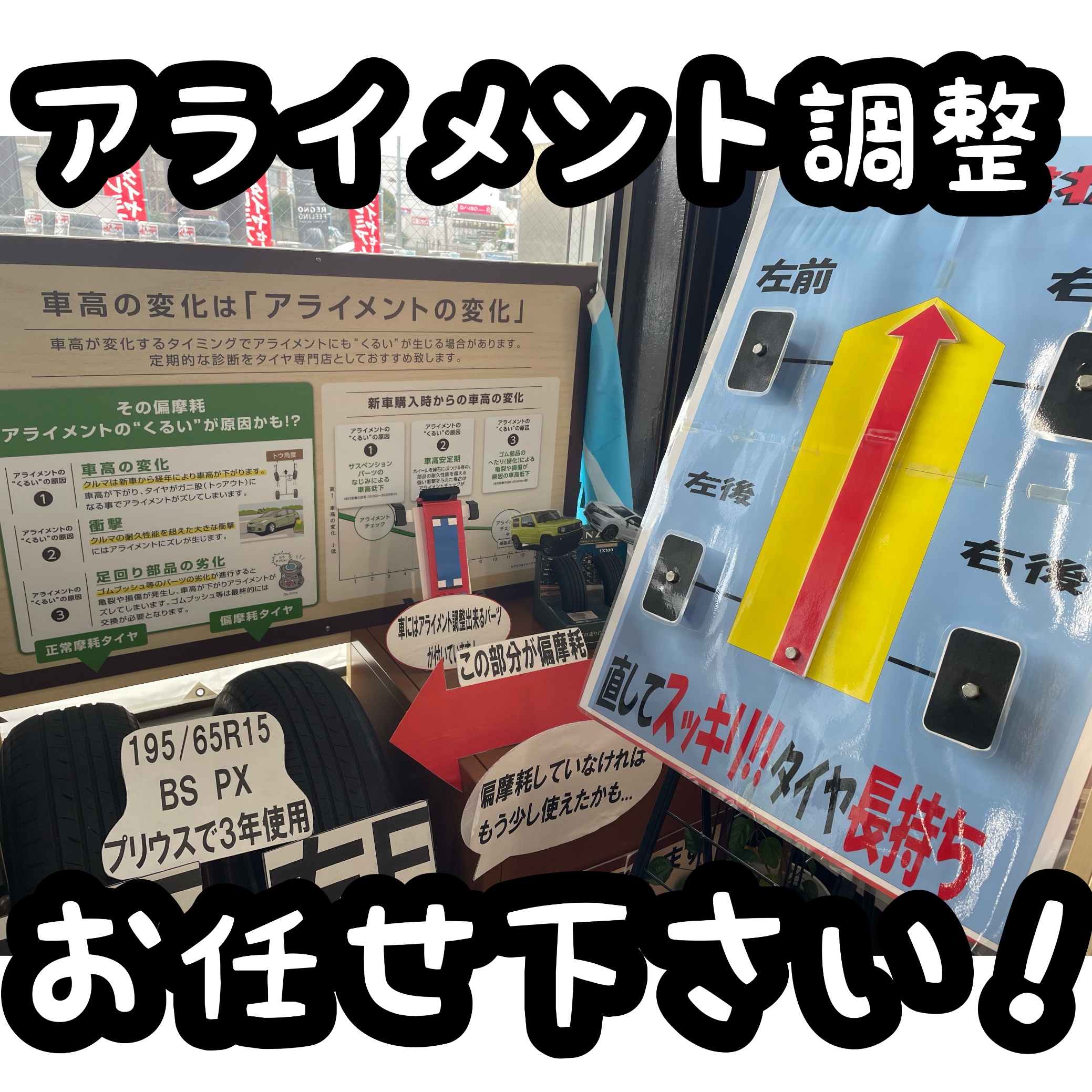 タイヤ館さつま泉北店ではアライメント調整の予約絶賛受付中でーす(*'▽'*)