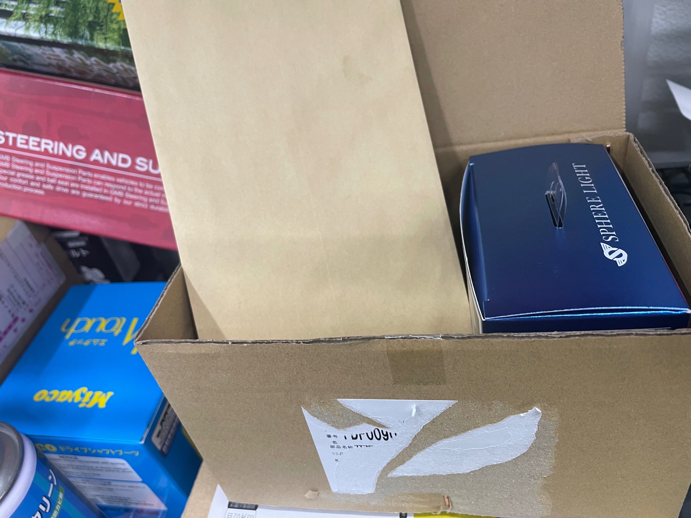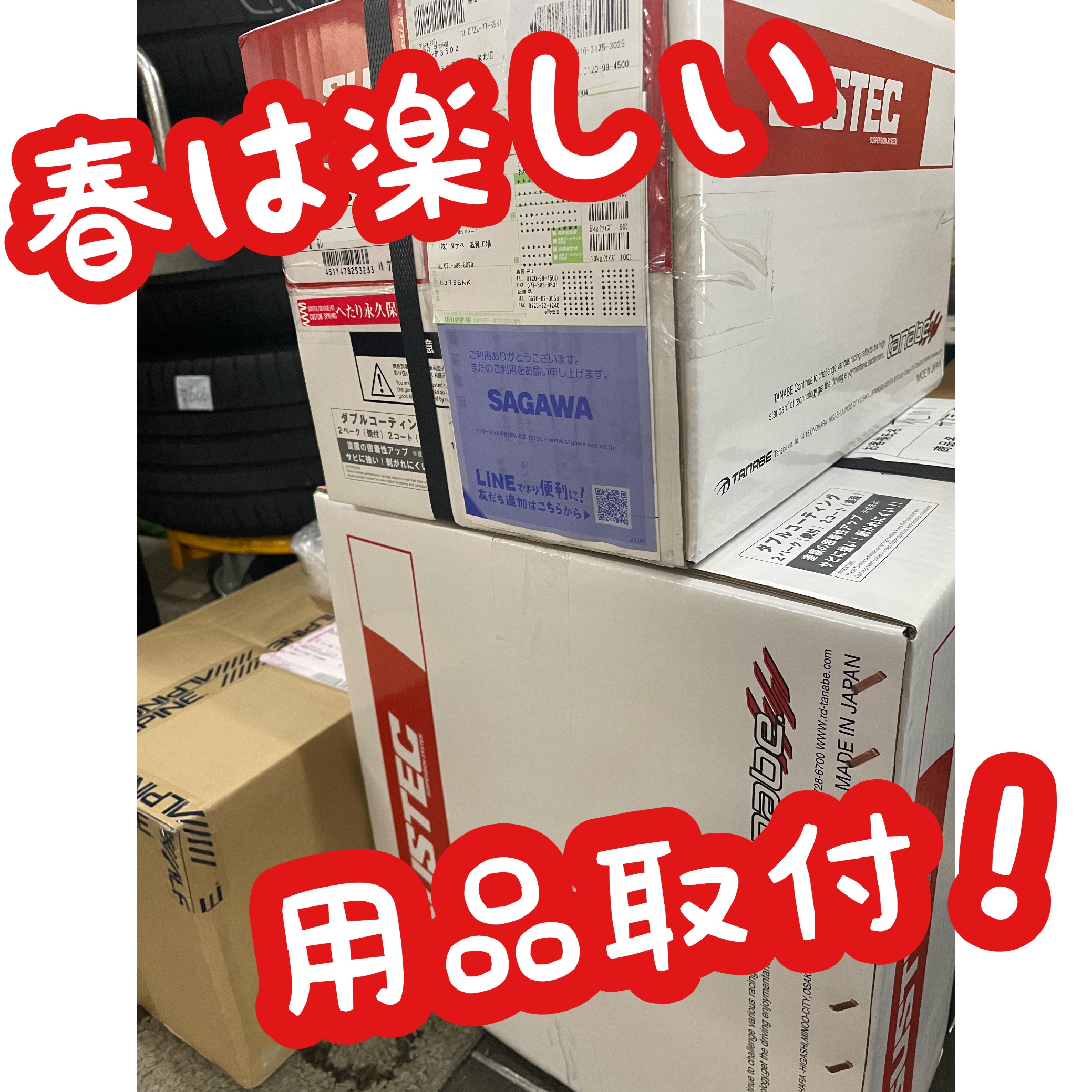 ダウンサス、車高調、デジタルインナーミラー、ドラレコ、LED、ウーハーなどなど裏に積み上げられてます(*´∀`)♪