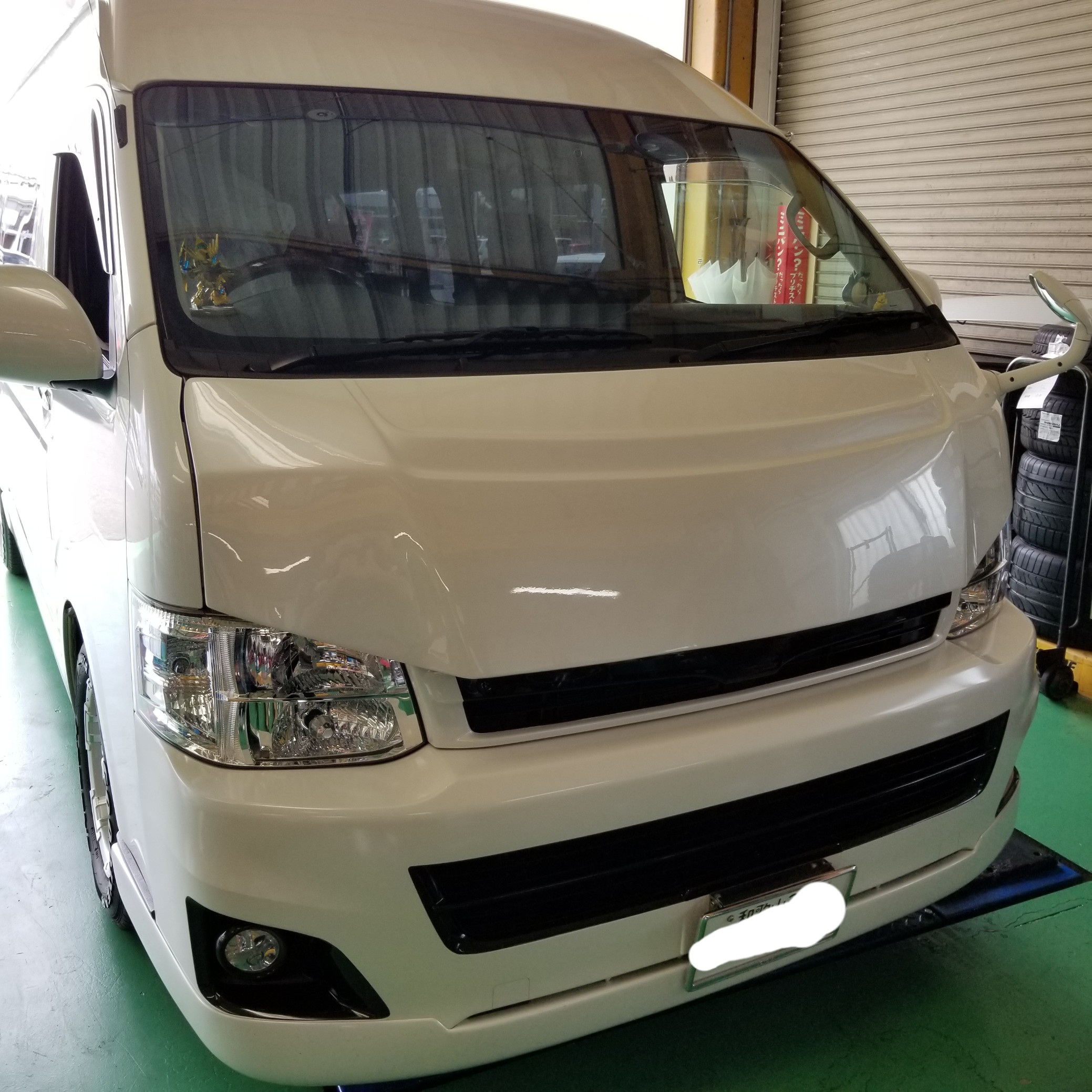 バッドスタイルボンネット ポスト 2019年6月12日 今日はハイエースワイド 3型のボンネットの交換です。 もともと社外品が装着されていましたが、さらにいかつく!とのご希望でジョーカーデザインのバッドスタイルボンネットをチョイス。 元の状態から 交換後 顔つきが悪くなったとオーナー様も大満足でした。 担当:戸田