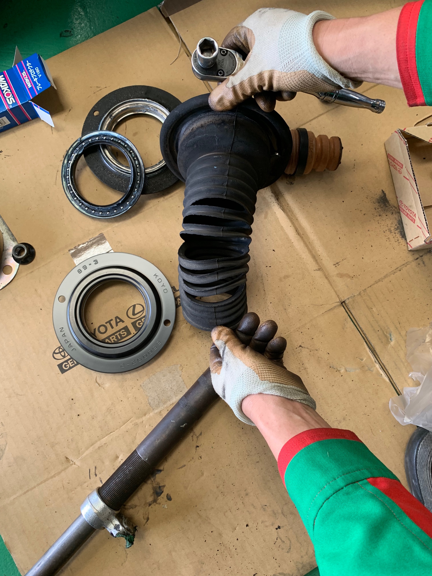 外しただけでベアリングが割れているのとダストブーツが破れていました