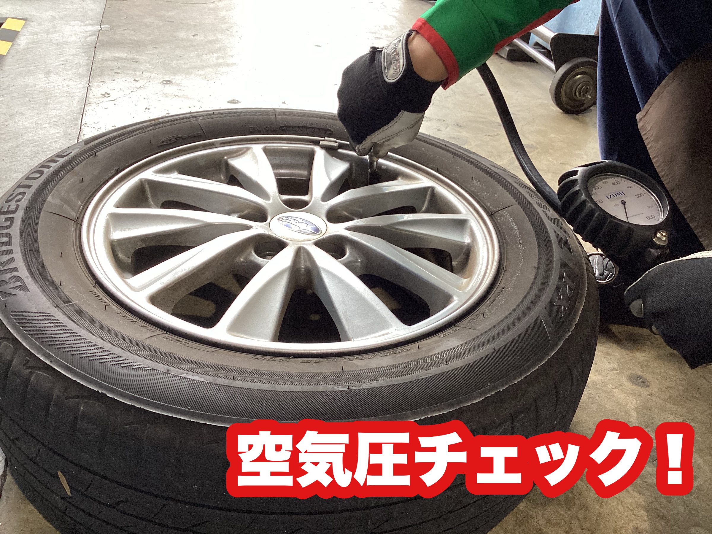 まずはタイヤの空気圧をチェックします!