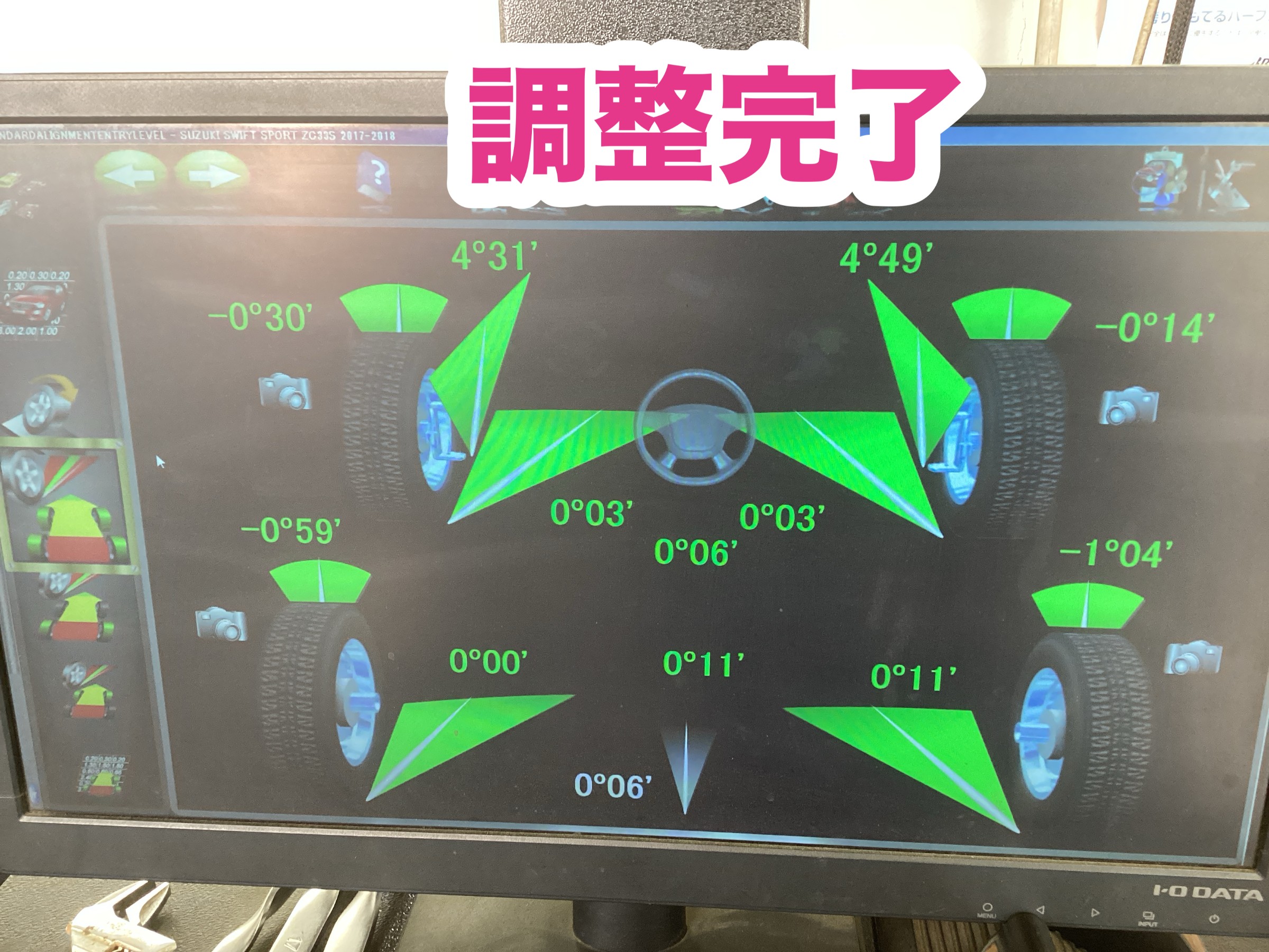 本日ご紹介の作業は、スイフトスポーツ アライメント調整です。