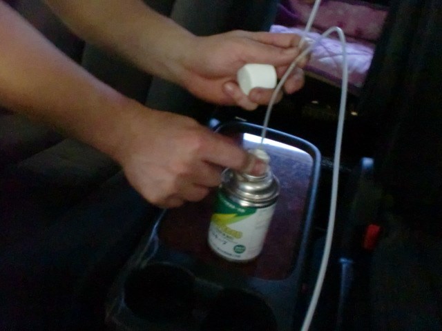 車内の空間と同時にエアコンシステム内にもミストを噴霧しますので