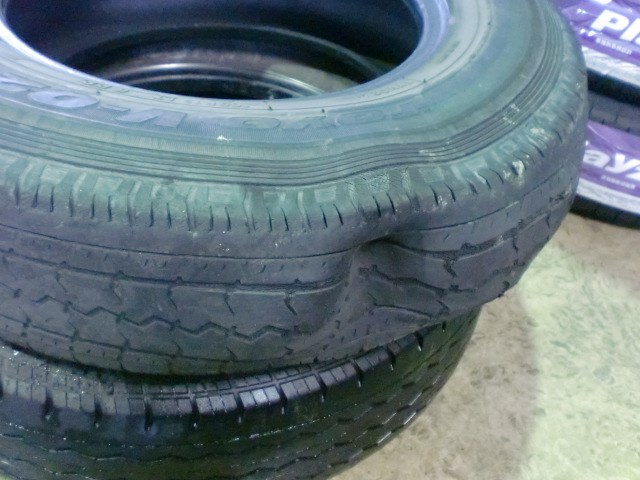 原因としてはタイヤのゴムの劣化、過積載、空気圧不足などが考えられます。