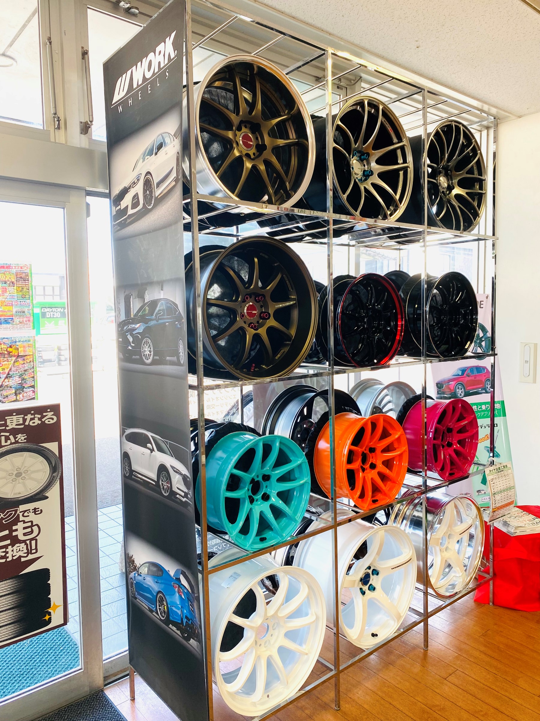 普段カタログでしかご覧いただけないWORKのホイールを多数展示中です。