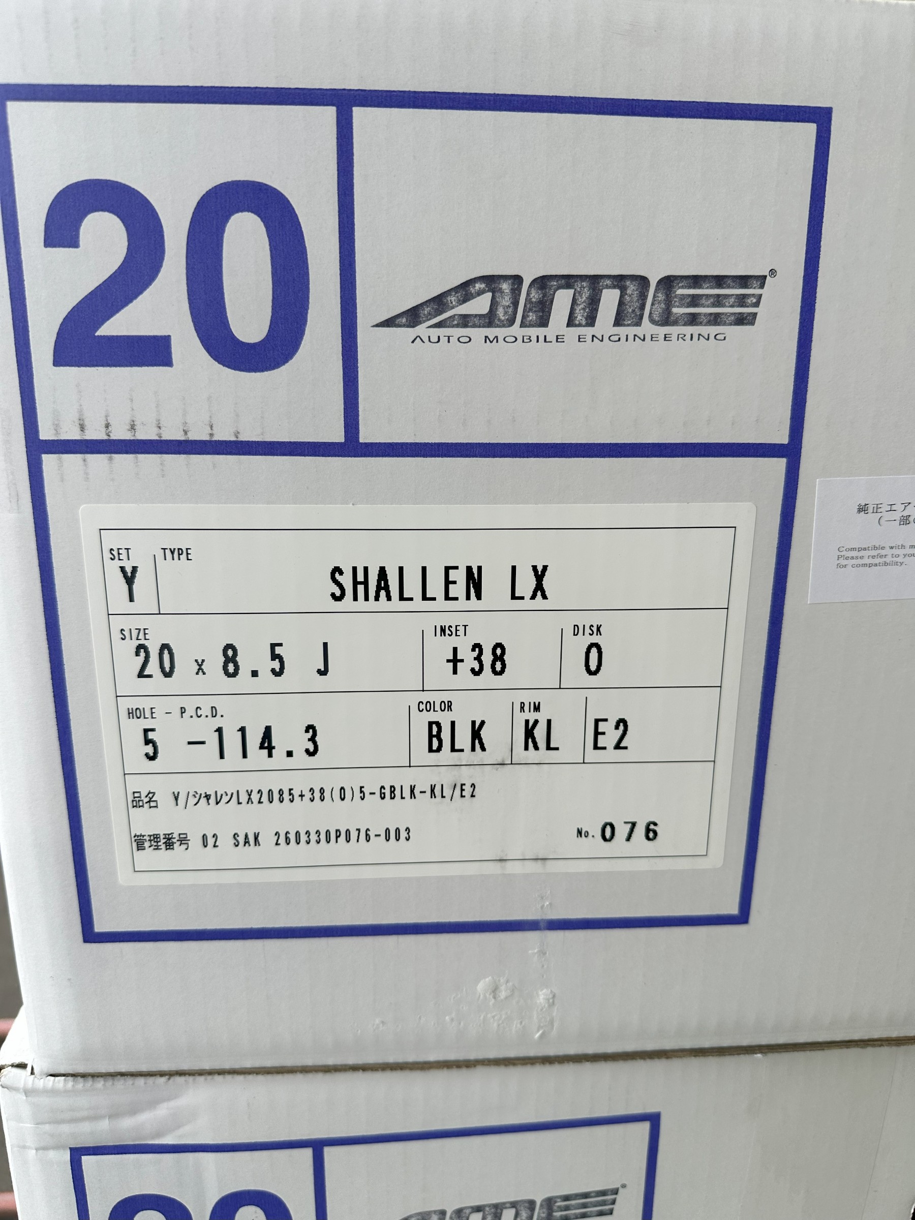 サイズは 20インチ 8.5J+38 5-114.3 となっております。