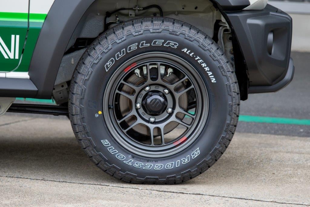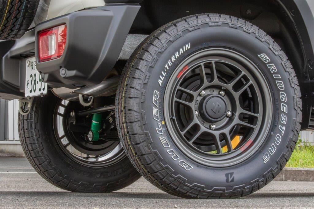 車種はジムニーノマドで純正タイヤと比べタイヤのごつごつ感が強調されていますね!