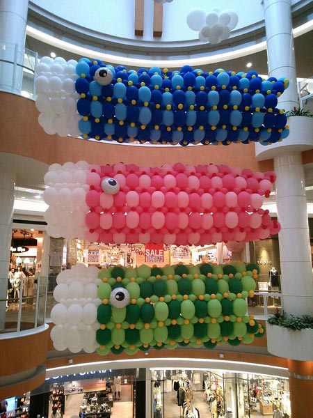 全てバルーンでできていて普段目にするこいのぼりとは少し違いますね!