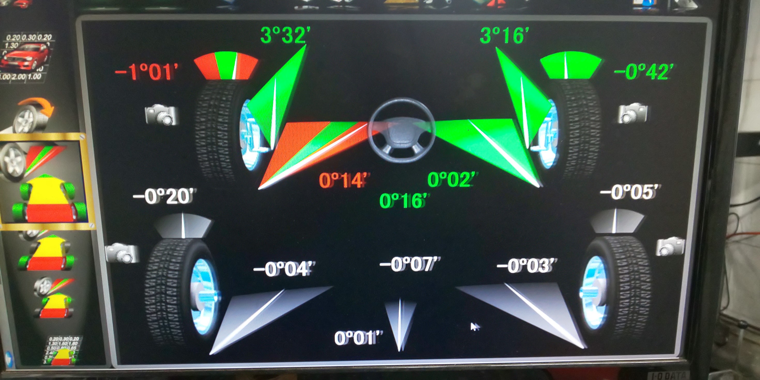 やはり左フロントのトーとキャンバーが基準値から大きくずれていました。