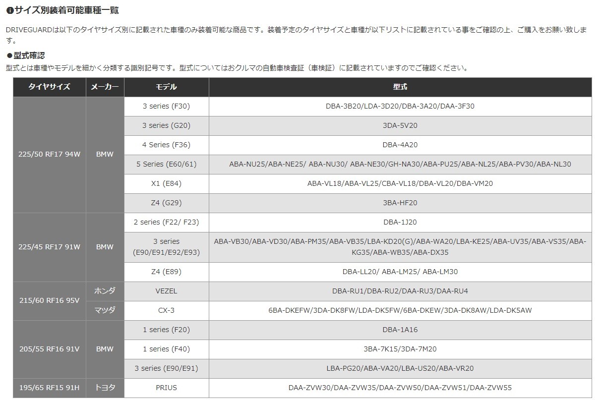 「ブリヂストンオンラインストア」 「DRIVEGUARD販売ページ」