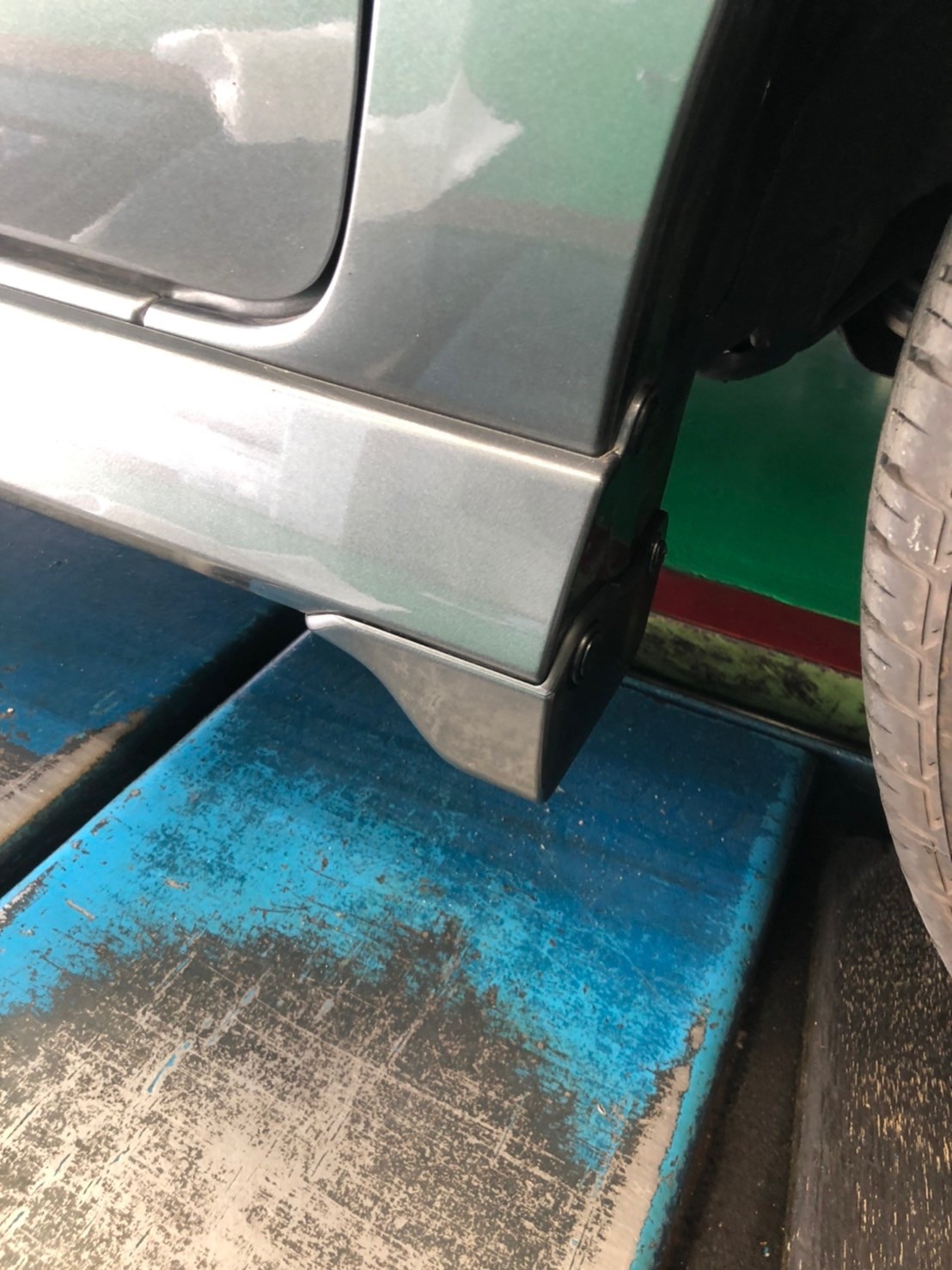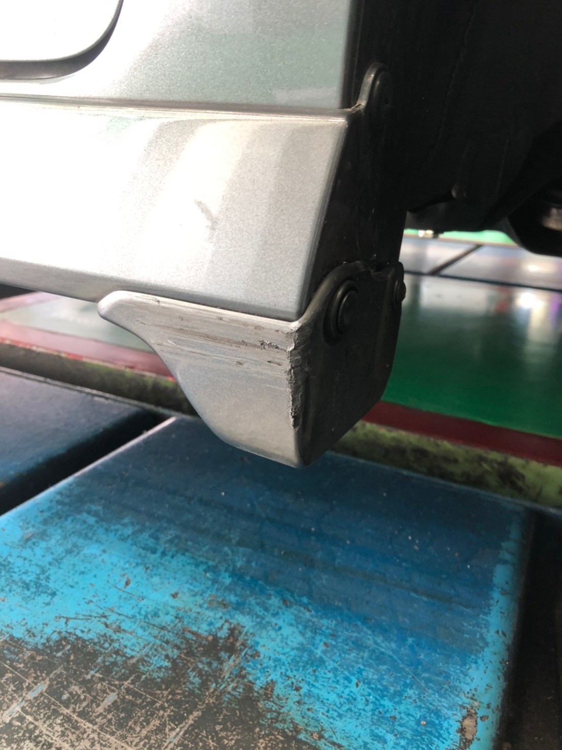 今回のお客様は、新車で購入したお車をぶつけてしまい、ホイールとマッドガードを傷つけてしまいました。