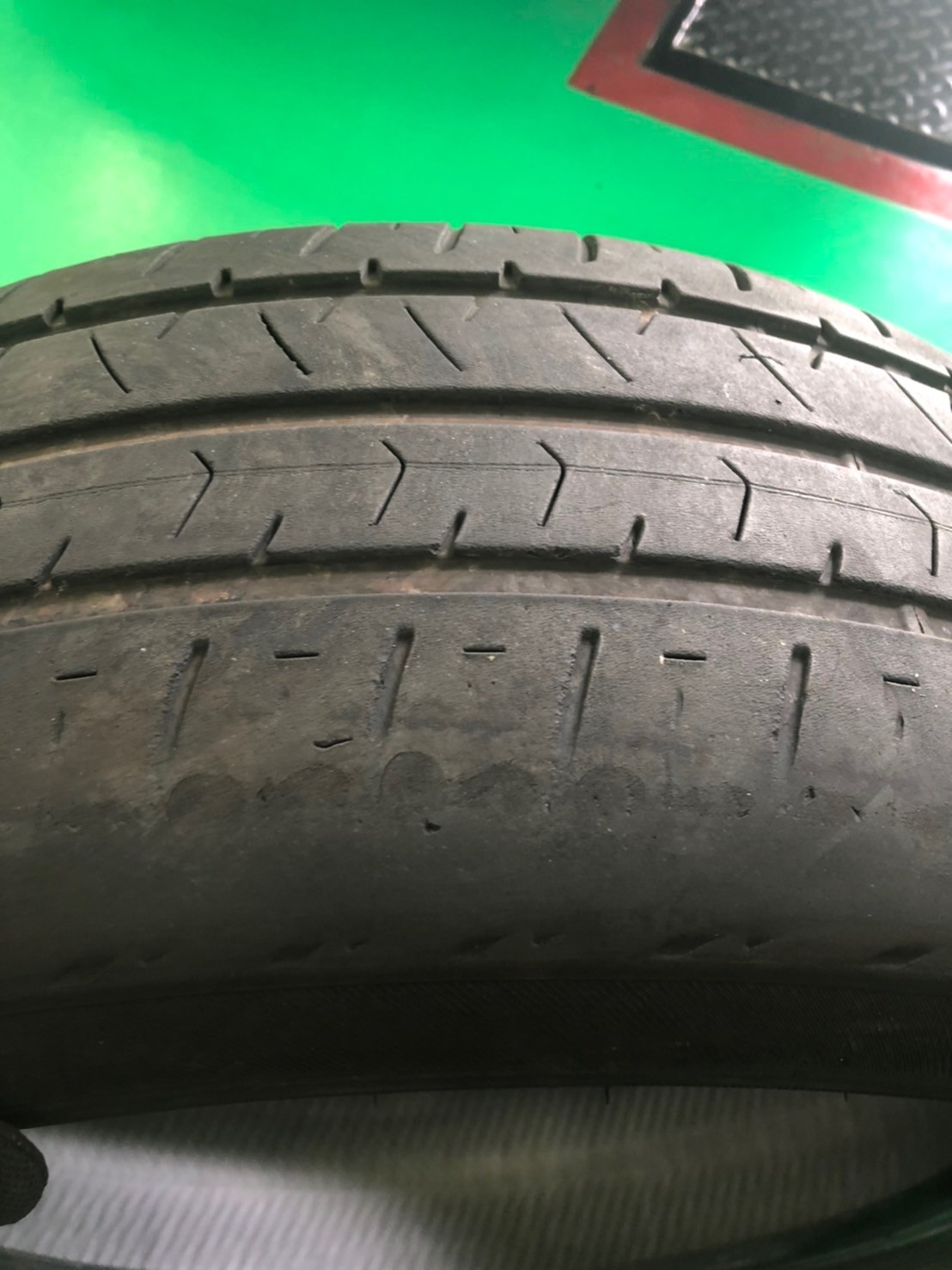 空気圧不足によりタイヤの肩の部分が極端に摩耗してしまったタイヤです。