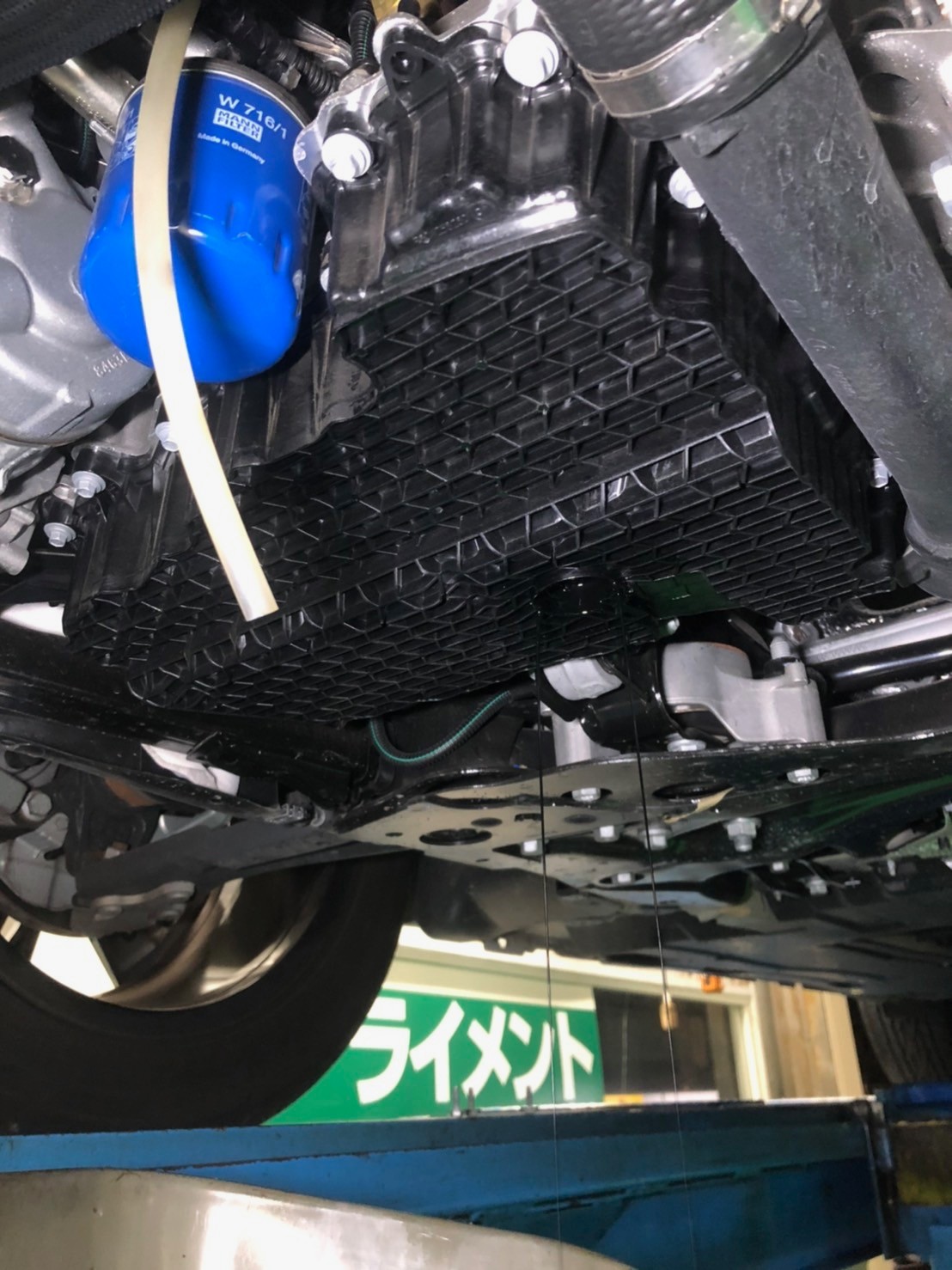 最近の車は下回りを隠していることが多いので、オイル交換するのも時間がかからようになりましたね。