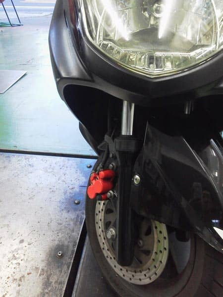 よく見ると、ブレーキパッドがありません。これでは通勤、ツーリングには