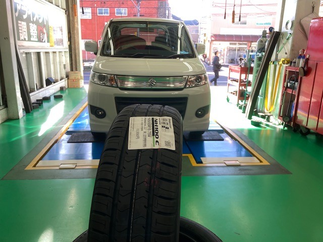 そんな説明をして新品購入していただいたお車、スズキ・ワゴンR!タイヤ交換。