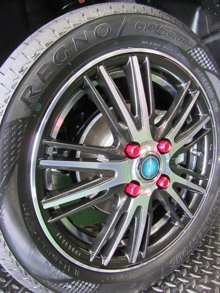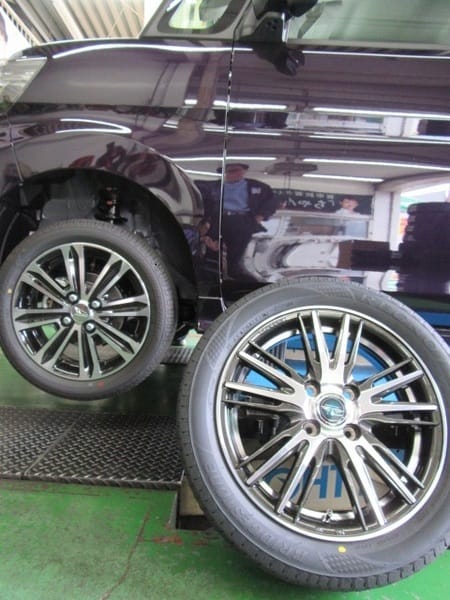 納車と同じ日にタイヤとアルミホイールを付けたいとの事でお客様がご自身で何種類か希望を出していただきタイヤとアルミホイールを決めていただきました。