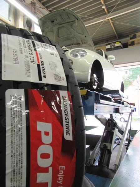 本日はDAIHATSUコペンにポテンザアドレナリンRE003のお取り付けです。