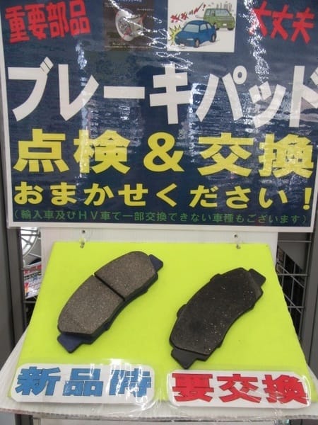 本日はタイヤ交換にご来店のお客様でございますが、簡単な点検をしましたらブレーキパッドの