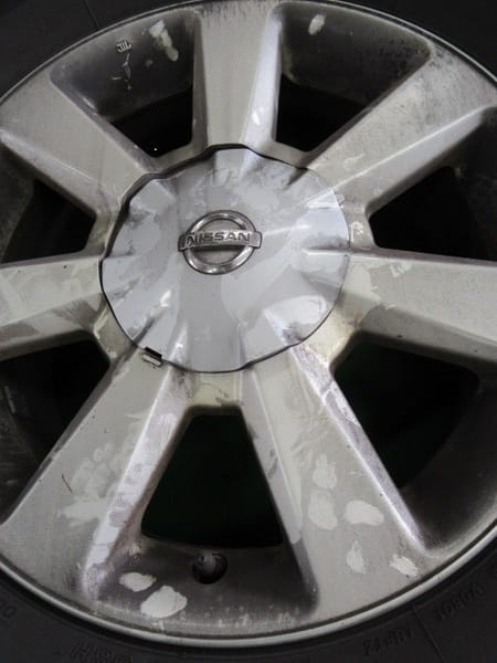 走行中ブレーキ周りに違和感を感じ、車を停めてタイヤを見てみると…ホイールはなぜか真っ黒に汚れていて、しかもなんだかタイヤ周辺がものすごい熱気です。