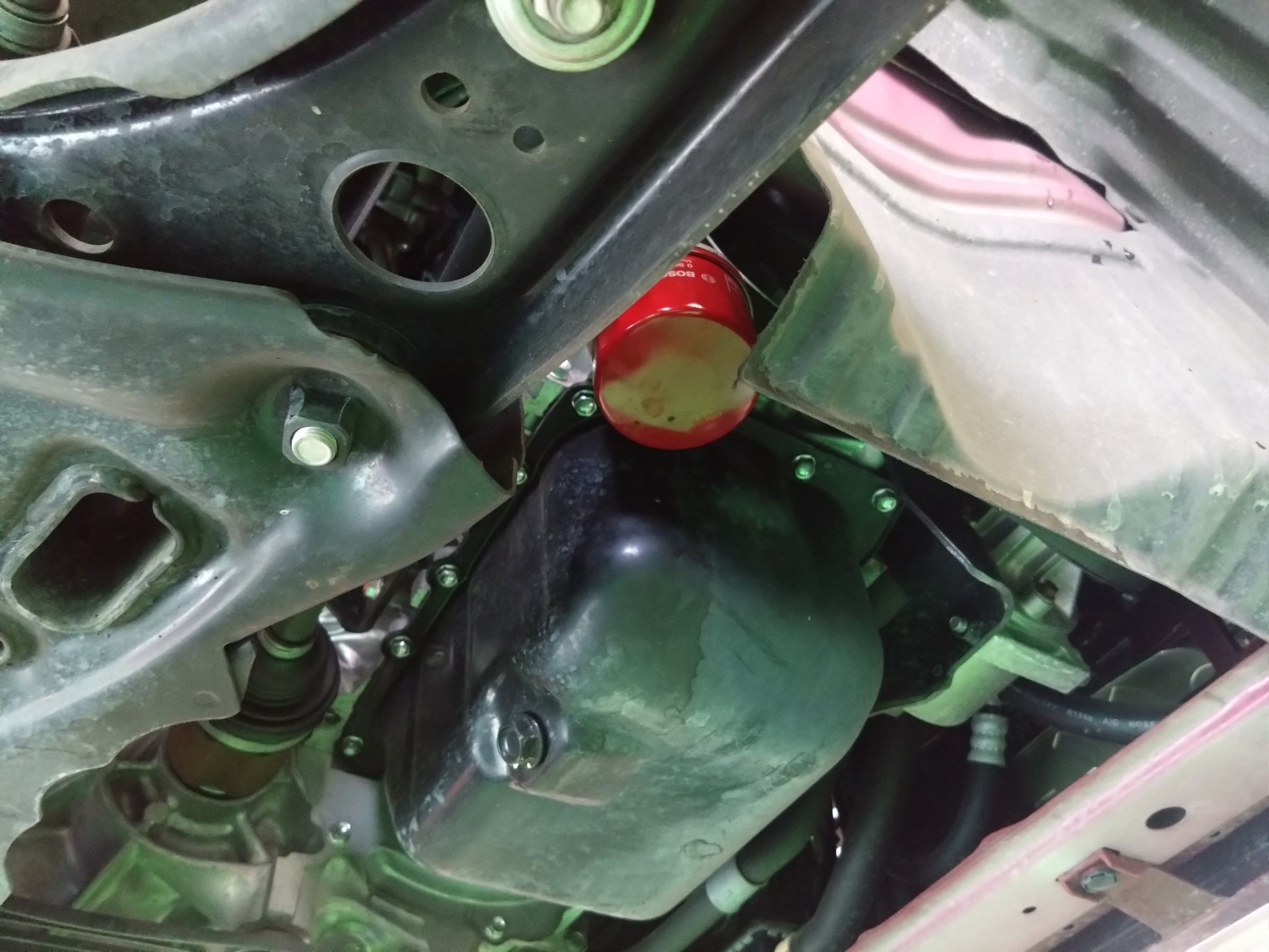 エンジンのドレーンボルトを外してエンジンオイル交換します。