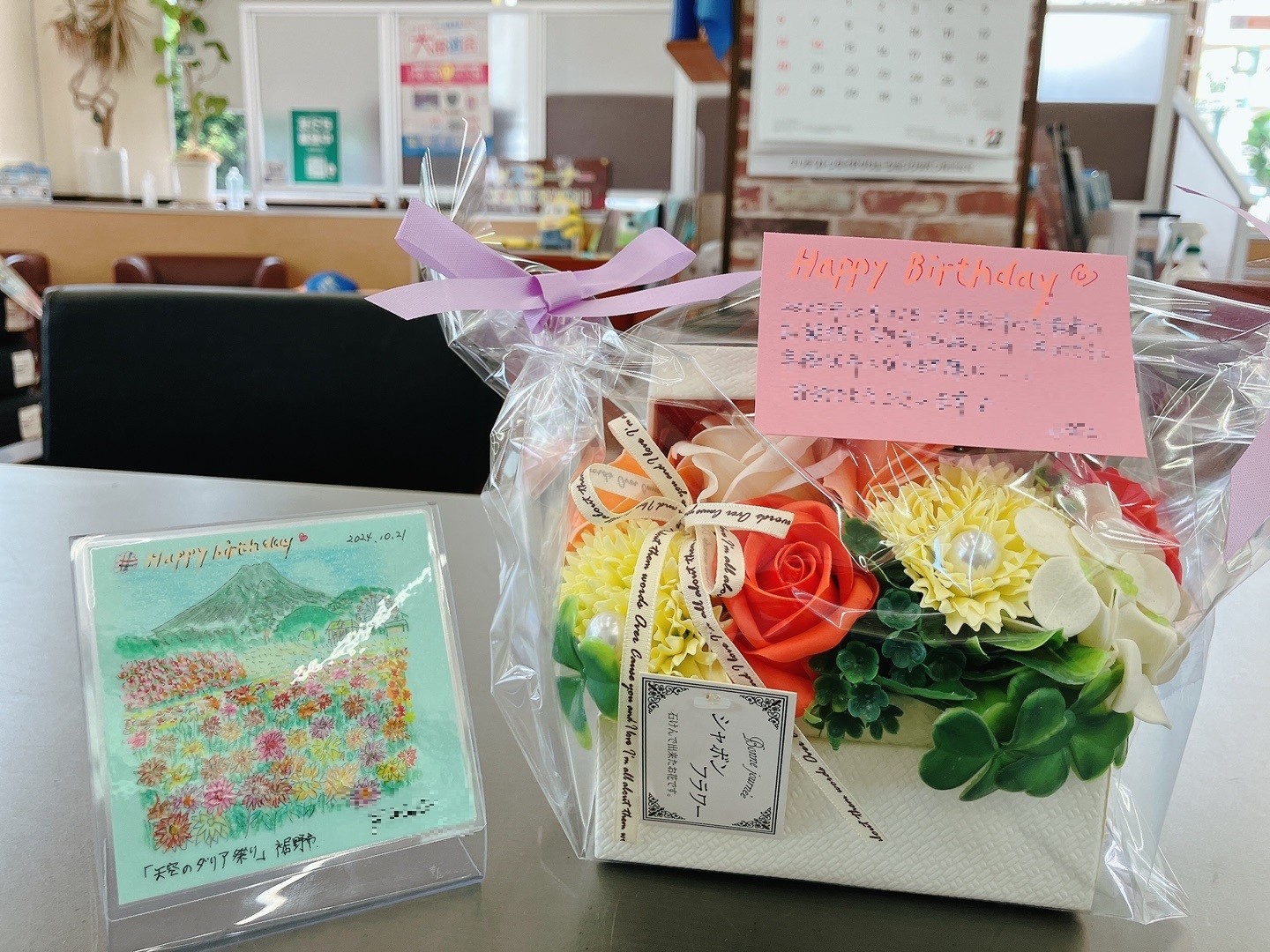 お花の形をしたフラワーソープと素敵なメッセージ、お客様が書いてくださった素敵な風景画まで!!