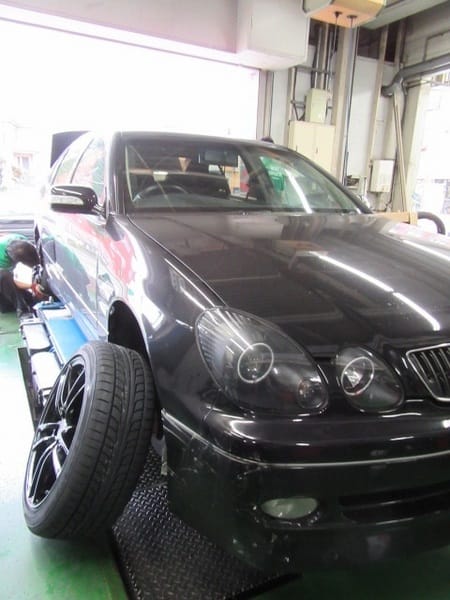 黒いアリストがご来店です。発売されてからもう長い歳月が経ちますが、まだまだ存在感のある人気車種です。