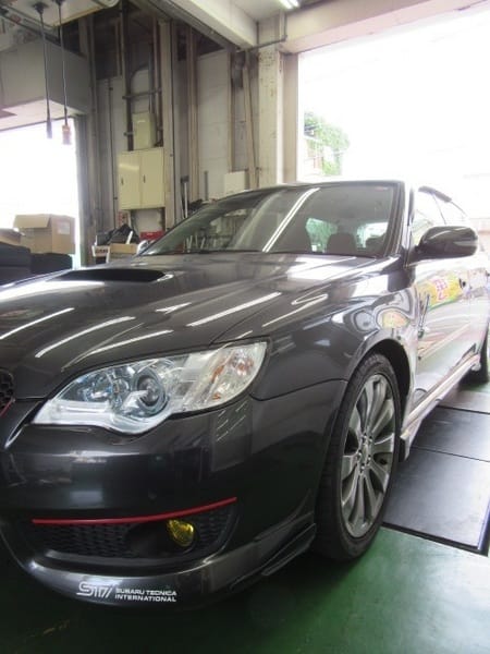 スバルのレガシィのローダウン作業です。