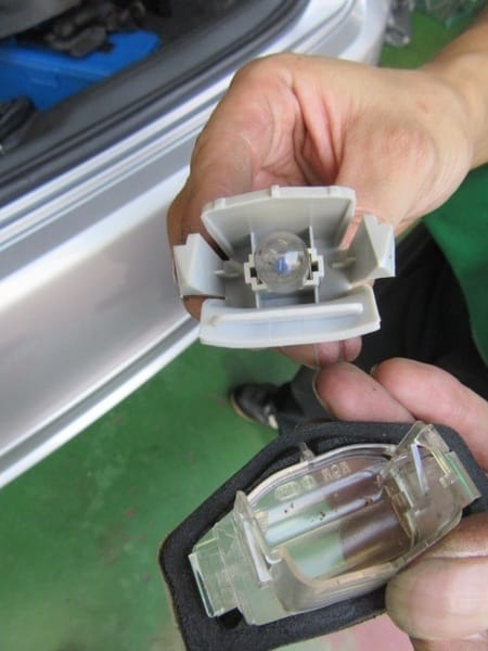 本日は車検でお預かりしているお車、ホンダ、アコードのナンバー灯の交換のご紹介です。