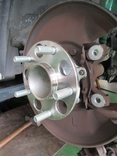 これはなんだ?ということになりすぐにリフトアップしてタイヤを見てみると、タイヤ自体は全く問題ありませんでしたが、サイドブレーキを解除しタイヤを手でぐるぐる回してみると・・・やはり音が聞こえてきました。原因は「ハブベアリング」です。