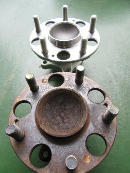 新品の部品と比べるとその差は歴然でした。やはり消耗部品です。このまま気にせず使い続けていれば、ハブベアリングが完全に破損し、最悪の場合タイヤが飛んで行ってしまったいたかもしれません。(某メーカーのトラックの脱輪事故のように・・・)作業しながらそんなことを考えてしまいました。